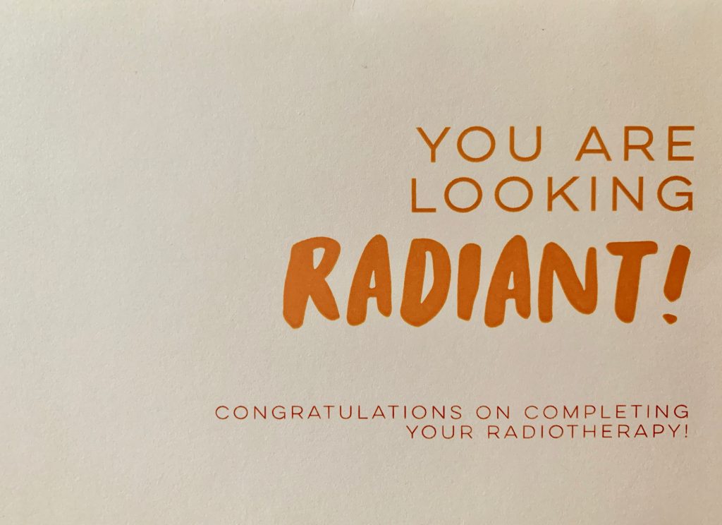 I was told that the radiotherapy has a cumulative effect, meaning that I wouldn’t feel anything for a week or two. The main side effect is inflamed skin, a bit like sunburn, and I was given medicated dressings to put on the sensitive parts.
